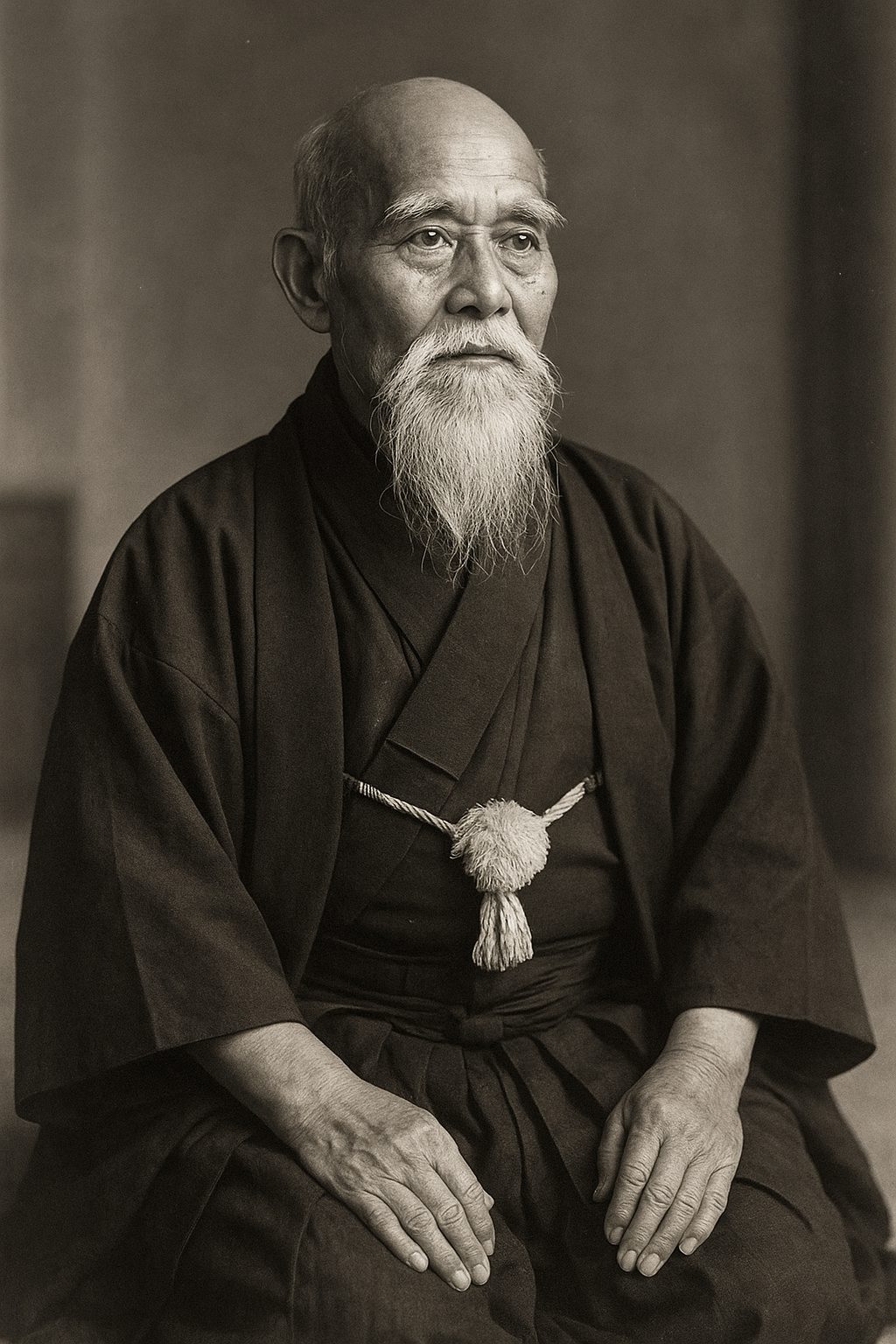 Morihei Ueshiba (植芝 盛平, December 14, 1883 – April 26, 1969), commonly known as O-Sensei (“Great Teacher”), was a Japanese martial artist best known as the founder of the martial art aikido. He is widely regarded as one of the most influential martial-arts teachers of the twentieth century.