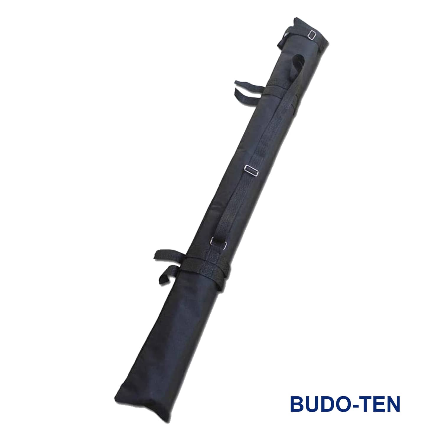 The four-piece set includes a jo (wooden staff), a bokken (wooden sword), a tanto (wooden dagger), and a waterproof carrying cover.
